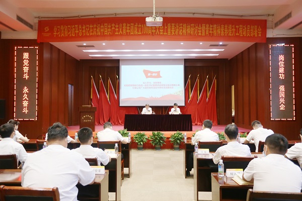 6月20日,中色大冶黨委召開學(xué)習(xí)貫徹習(xí)近平總書記在慶祝中國共產(chǎn)主義青年團成立100周年大會上重要講話精神研討會暨青年精神素養(yǎng)提升工程動員部署會。中色大冶黨委書記、董事長張晉軍出席會議并以“深入學(xué)習(xí)貫徹總書記重要講話和指示批示精神,為公司綠色高質(zhì)量發(fā)展匯聚磅礴青春力量”為題,向廣大青年講授精神素養(yǎng)提升“第一課”。中色大冶黨委副書記、工會主席王勃主持會議。