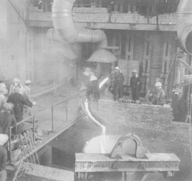 1960年4月6日,中色大冶迎來了第一代爐——反射爐點(diǎn)火的神圣時刻;4月22日下午2點(diǎn),第一包冰銅放滿;4月23日,冶煉廠反射爐順利放出第一爐冰銅。