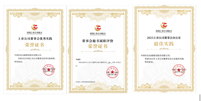 近日,中色股份在中國上市公司協(xié)會組織的權(quán)威評選中連獲“上市公司董事會優(yōu)秀實踐案例”“上市公司董事會秘書5A評級”(最高級)及“上市公司董事會辦公室最佳實踐案例”(最高級)三項大獎。這標(biāo)志著公司從董事會領(lǐng)航掌舵、董事會秘書核心履職到董事會辦公室專業(yè)執(zhí)行的完整治理鏈條獲得了資本市場監(jiān)管機(jī)構(gòu)與行業(yè)的高度評價,展現(xiàn)了公司治理體系和治理效能的先進(jìn)性與有效性。