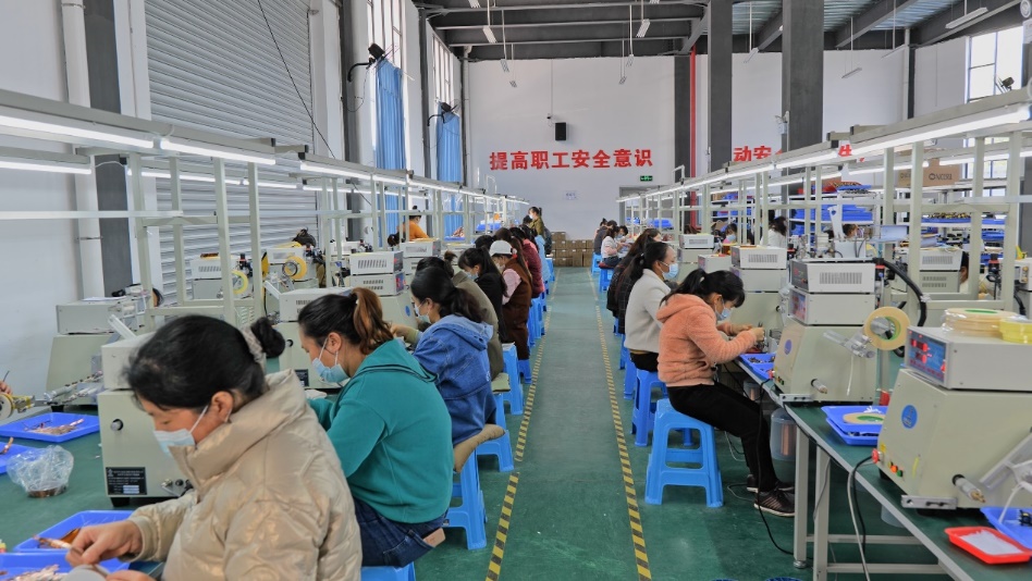 聚緣村是梁河縣農(nóng)戶來源最廣泛、建檔立卡戶占比最高的易地搬遷新村,安置了全縣9個鄉(xiāng)鎮(zhèn)易地搬遷群眾190戶768人,建檔立卡戶占比73%。習(xí)近平總書記強調(diào):“樂業(yè)才能安居,解決好就業(yè)問題,才能確保搬遷群眾穩(wěn)得住、逐步能致富,防止返貧?!睘閿U展聚緣村搬遷群眾的收入來源,中國有色集團投資265萬元幫扶扶貧車間一座,引入電子器件裝配加工企業(yè)和農(nóng)業(yè)公司,投入資金對車間脫貧員工進行上崗培訓(xùn),實現(xiàn)了搬遷勞動力家門口就業(yè)。楊國敏已連續(xù)多月蟬聯(lián)生產(chǎn)效率榜榜首,工資每月最高可以拿到4千多,她一邊熟練地組裝著手里的器件,一邊說道:“在搬遷之前我就發(fā)愁以后要怎么謀生,沒想到幫扶單位中國有色集團早為我們謀劃好了工作問題,通過參加組織的培訓(xùn),提高了技能熟練度,在家門口從農(nóng)民變成了藍領(lǐng)工人,現(xiàn)在車間的員工人均每月都能拿到3000多的工資。”