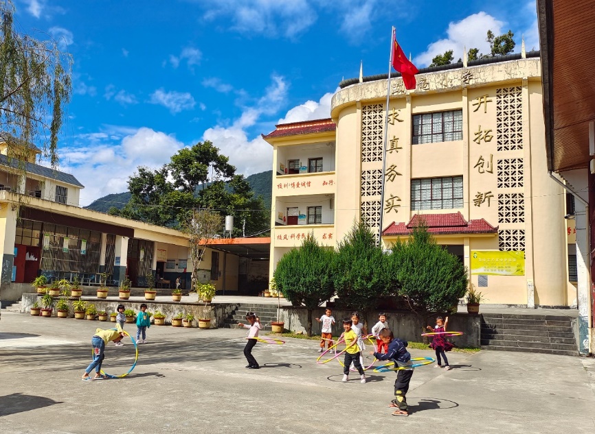從梁河縣城到小廠鄉(xiāng)勐竜村,一路云霧繚繞、百轉(zhuǎn)千回,這座“世外桃源”地處高寒深山、交通閉塞。勐竜小學(xué)校長楊明浩向我們介紹到:“因勐竜村較為偏遠、相對獨立,這所小學(xué)能夠覆蓋到的學(xué)生并不算多,但這是村里孩子能接受教育的唯一窗口?!?004年,中國有色集團為勐竜小學(xué)幫扶建設(shè)了教學(xué)樓,這也是公司在梁河幫扶建設(shè)的第一座教學(xué)樓,而援建標識牌上記錄的還是公司時用名“中國有色建設(shè)集團有限公司”。變的是稱謂,不變的是傾情幫扶,五年后的2010年中國有色集團再次捐資幫助購買教學(xué)設(shè)備,十年后的2014年繼續(xù)幫扶建成了學(xué)生宿舍和圍墻。