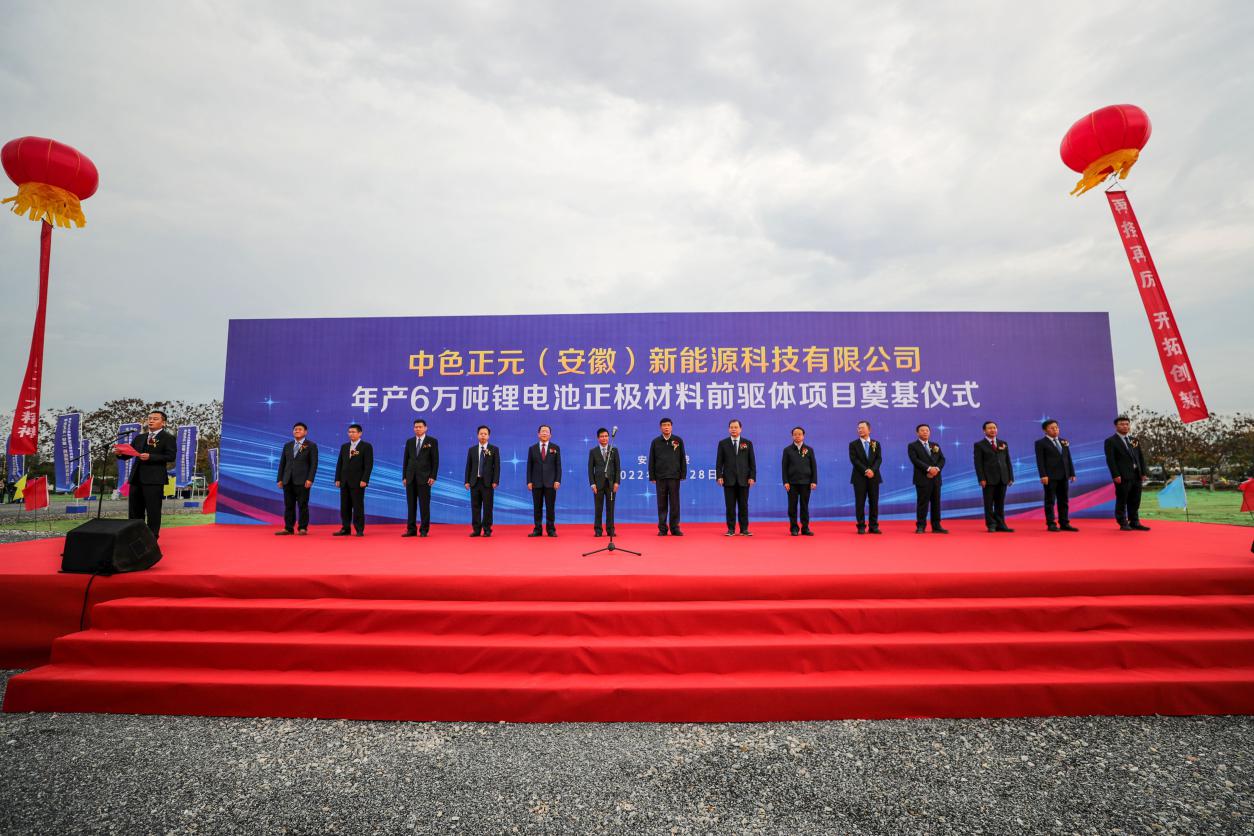 11月29日上午,中色正元(安徽)新能源科技有限公司舉行揭牌儀式。中國有色集團(tuán)黨委書記、董事長奚正平,總經(jīng)理張晉軍,廈門鎢業(yè)黨委書記、董事長黃長庚,銅陵市市長孔濤共同為公司揭牌。