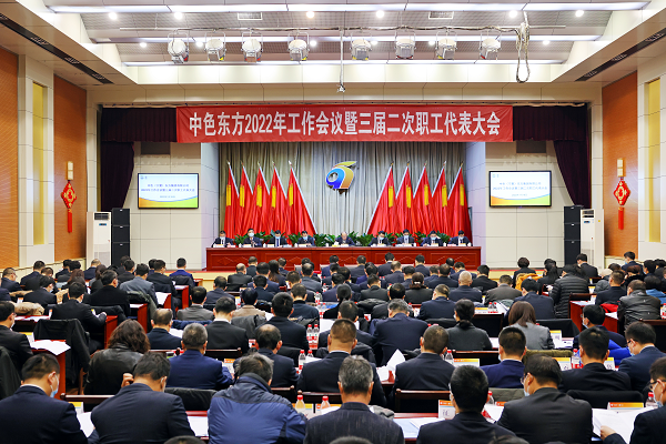 1月18日,中國有色集團(tuán)出資企業(yè)中色(寧夏)東方集團(tuán)有限公司(簡稱:中色東方)召開2022年工作會議暨三屆二次職工代表大會,深入學(xué)習(xí)貫徹中國有色集團(tuán)年度工作會議和自治區(qū)經(jīng)濟(jì)工作會議精神,總結(jié)2021年工作,表彰年度各類先進(jìn),對重點(diǎn)科技攻關(guān)、深化改革推進(jìn)等5個專項(xiàng)9個團(tuán)隊(duì)進(jìn)行嘉獎表彰,分析研判當(dāng)前形勢,安排部署2022年工作,動員中色東方全體干部職工,統(tǒng)一思想認(rèn)識、堅定發(fā)展信心、勇毅踔厲前行,推動中色東方實(shí)現(xiàn)高質(zhì)量發(fā)展。中色東方黨委書記、董事長李春光講話,黨委副書記、總經(jīng)理?xiàng)詈兆鞴ぷ鲌蟾妗?/span>