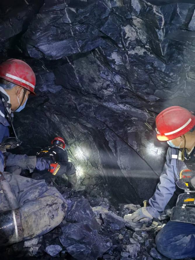 圖丨赤峰大井子礦業(yè)二采區(qū)技術(shù)室地測組成員現(xiàn)場勘查揭露礦體具體狀態(tài)數(shù)據(jù)