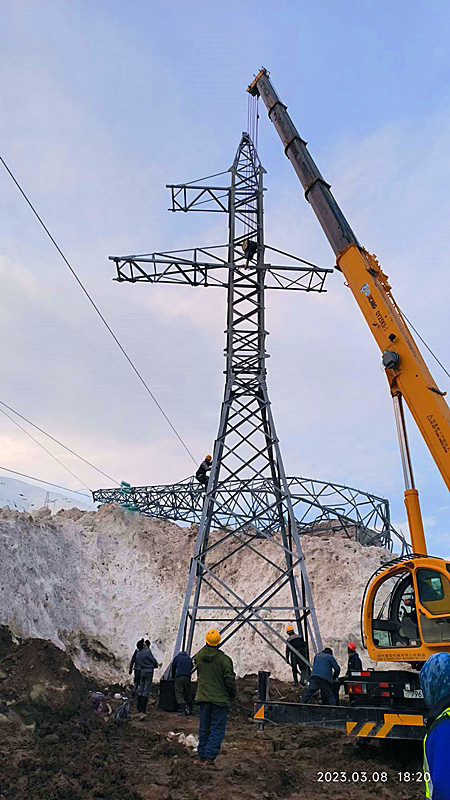圖丨黨員干部冒著嚴寒架設被雪崩沖倒的外線電塔