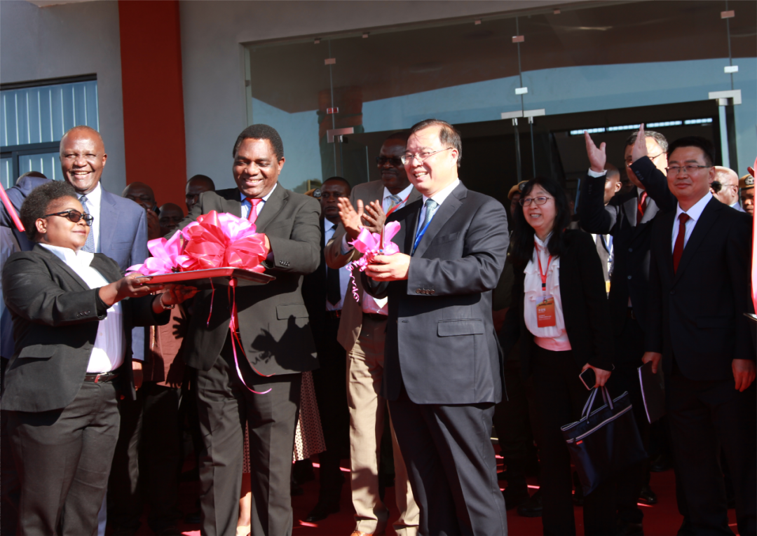 中贊職院新校區(qū)竣工剪彩儀式為論壇拉開序幕。希奇萊馬總統(tǒng)、中國(guó)有色集團(tuán)董事長(zhǎng)奚正平共同為中贊職院新校區(qū)竣工剪彩。