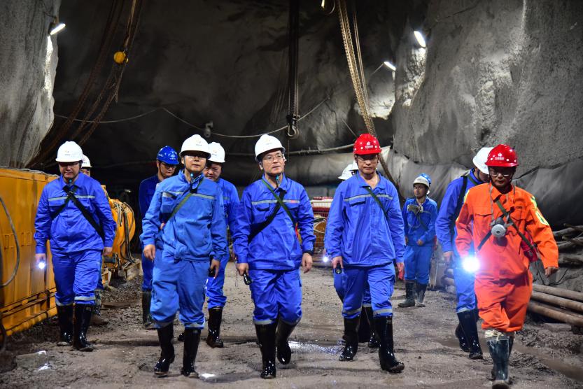 張晉軍一行深入中色大冶銅山口礦坑采車間、選礦生產(chǎn)場地、智能化管控中心,實(shí)地檢查了企業(yè)安全生產(chǎn)管控情況,察看了井下滾刀式掘進(jìn)機(jī)作業(yè)過程、選礦作業(yè)流程、礦山智能化建設(shè)和科技興安環(huán)推進(jìn)情況,詳細(xì)了解了企業(yè)安全環(huán)保、生產(chǎn)經(jīng)營等重點(diǎn)工作進(jìn)展。