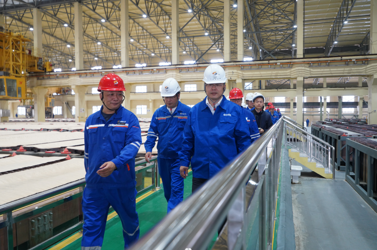 圖丨奚正平董事長參觀中色大冶弘盛銅業(yè)電解片區(qū)