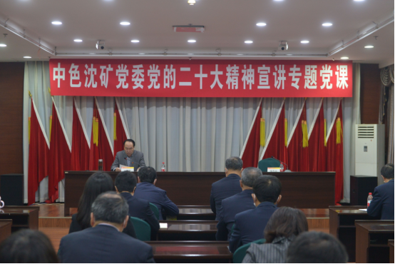 11月17日,按照集團(tuán)公司黨委統(tǒng)一部署,中國(guó)有色集團(tuán)出資企業(yè)沈陽(yáng)礦業(yè)投資有限公司(簡(jiǎn)稱:中色沈礦)黨委召開(kāi)黨的二十大精神宣講專題黨課會(huì)議,中色沈礦黨委書(shū)記、董事長(zhǎng)王鎖寬以《以二十大精神為行動(dòng)綱領(lǐng) 、推動(dòng)沈礦綠色高質(zhì)量發(fā)展,凝心聚力在新征程中展現(xiàn)新?lián)?dāng)貢獻(xiàn)新力量》為題,為全級(jí)次廣大黨員干部講授專題黨課,宣貫黨的二十大精神,對(duì)走好走穩(wěn)中色沈礦綠色高質(zhì)量發(fā)展之路作出部署,并就學(xué)習(xí)落實(shí)好二十大精神提出要求。