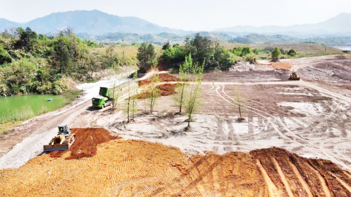 今年4月,項目進入壩面覆土階段,為了就近找到既符合土質標準、又符合國土資源管理要求、且符合運輸成本最低條件的取土點,專班人員跑遍了周邊的村村落落、山地林坡,終于順利拿到取土審批手續(xù)。