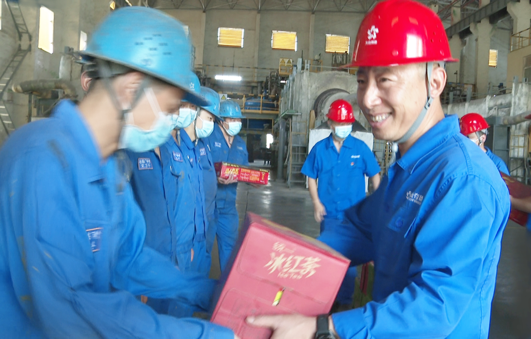 ????在物流公司鐵運分公司拉渣排班室前,公司領(lǐng)導(dǎo)對大家堅守崗位保生產(chǎn)作出的貢獻表示感謝,并叮囑大家勞逸結(jié)合,以良好的精神狀態(tài),保證運輸安全。