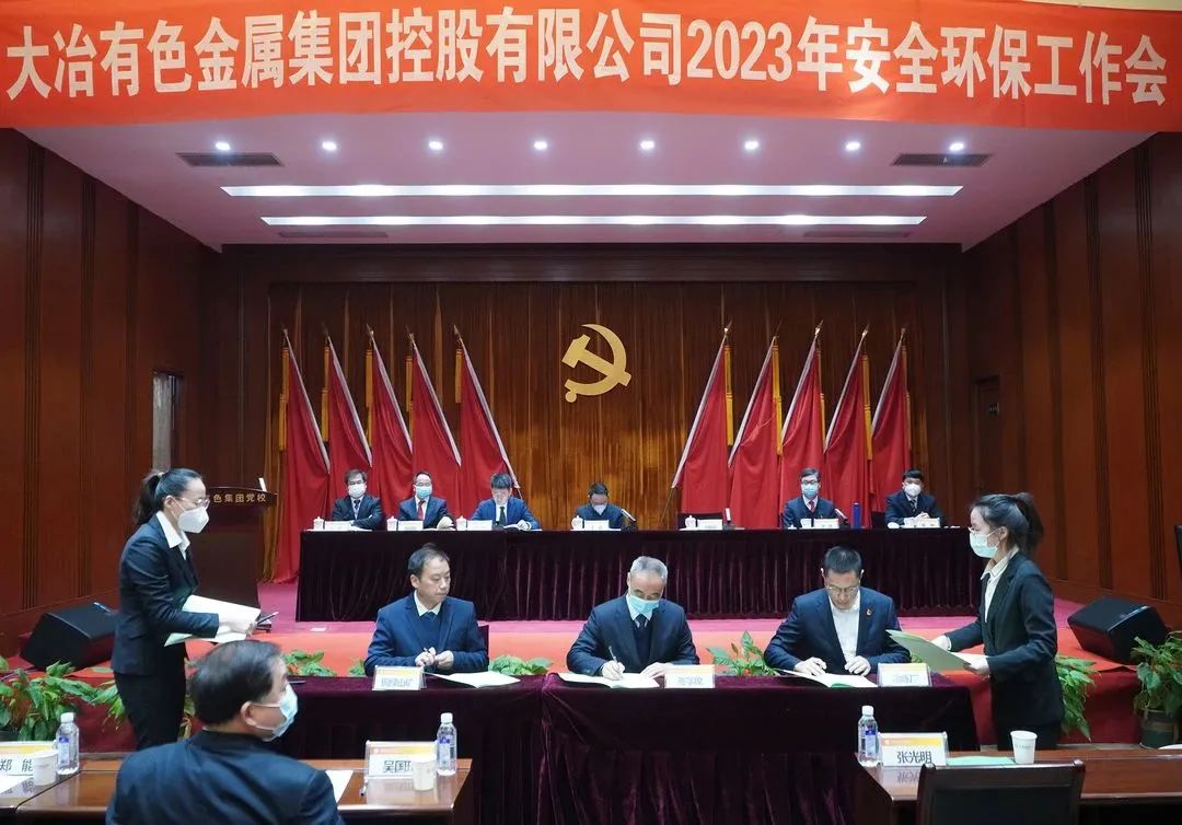 ????胡國(guó)斌與冶煉廠、銅綠山礦、豐山銅礦、弘盛銅業(yè)、銅山口礦、金格公司主要負(fù)責(zé)人現(xiàn)場(chǎng)簽訂了2023年度安全、環(huán)保工作目標(biāo)責(zé)任書。銅綠山礦、冶煉廠、金格公司3家單位主要負(fù)責(zé)人分別就安全環(huán)保工作作表態(tài)發(fā)言。