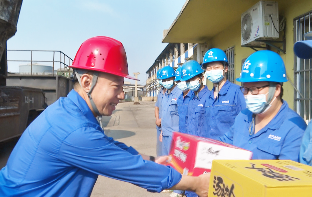 ????在物流公司鐵運分公司拉渣排班室前,公司領導對大家堅守崗位保生產(chǎn)作出的貢獻表示感謝,并叮囑大家勞逸結合,以良好的精神狀態(tài),保證運輸安全。