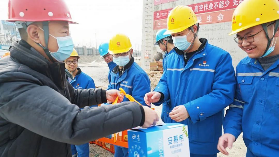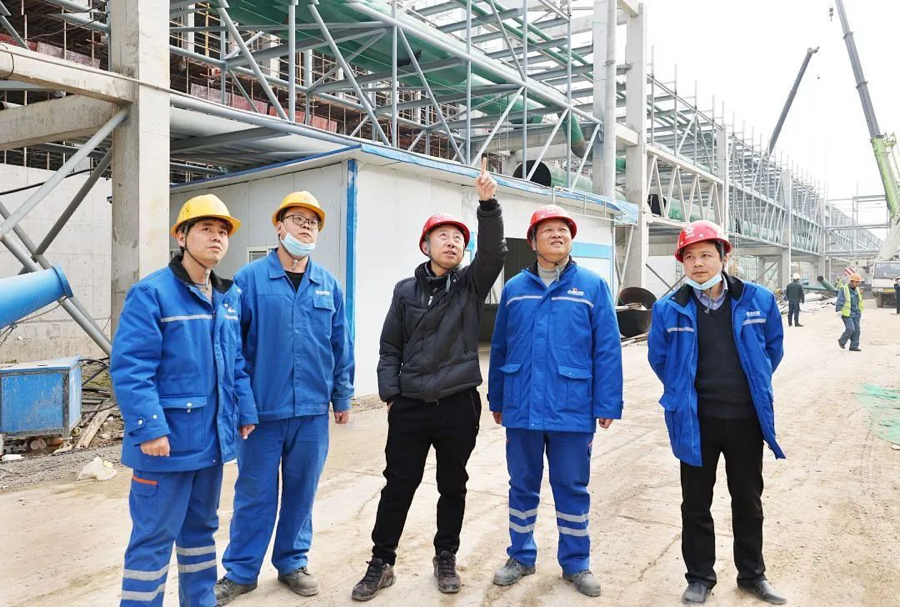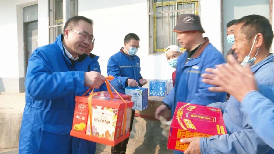 現(xiàn)場(chǎng)檢查指導(dǎo)后,王焱、萬(wàn)軍來(lái)到40萬(wàn)噸項(xiàng)目辦公樓,看望慰問(wèn)項(xiàng)目指揮部職工,與大家親切交談,詢問(wèn)食堂飯菜吃得好不好,叮囑大家做好項(xiàng)目建設(shè)安全施工,為職工鼓勁加油,祝大家節(jié)日快樂(lè)。