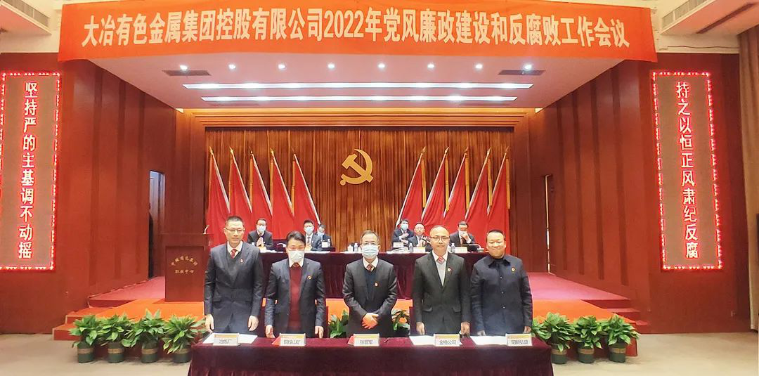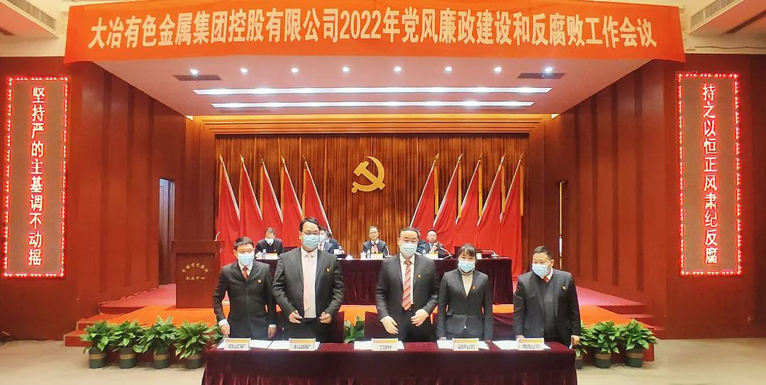 張晉軍代表公司黨委與冶煉廠、銅綠山礦、金格公司、弘盛銅業(yè)黨組織負(fù)責(zé)人簽訂黨風(fēng)廉政建設(shè)責(zé)任書。
