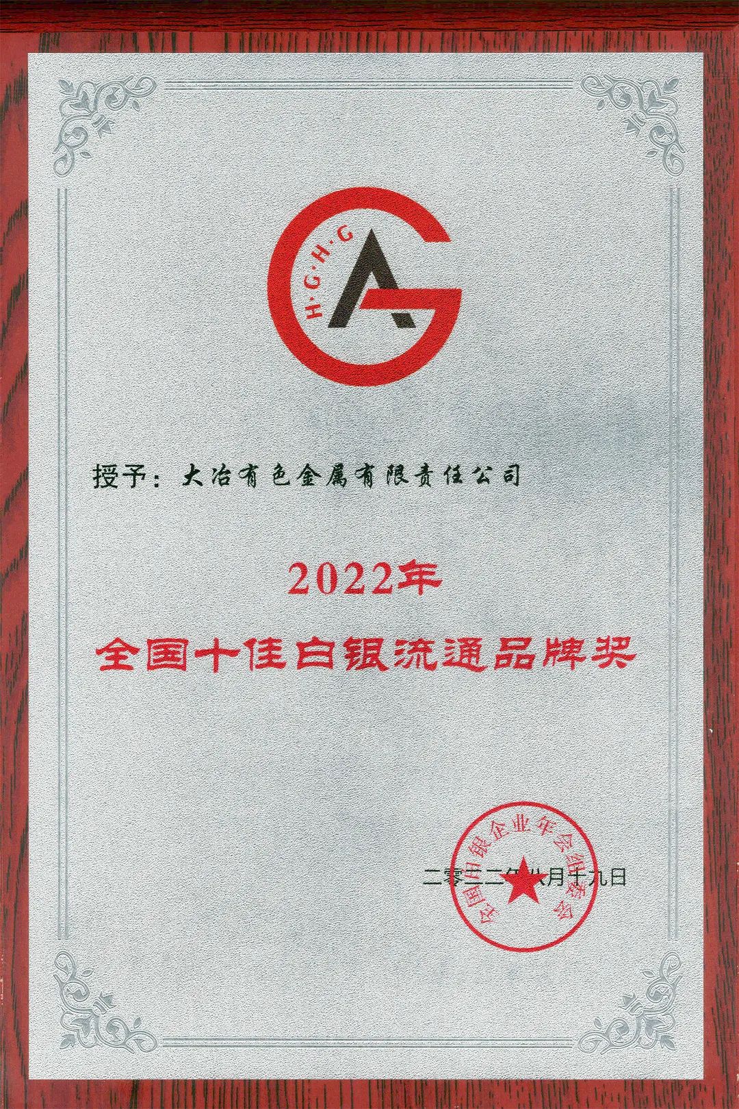 8月22日,在貴州省貴陽(yáng)市召開(kāi)的2022年(第八屆)全國(guó)白銀企業(yè)年會(huì)上,公司被年會(huì)組委會(huì)授予“2022年全國(guó)十佳白銀流通品牌獎(jiǎng)”。