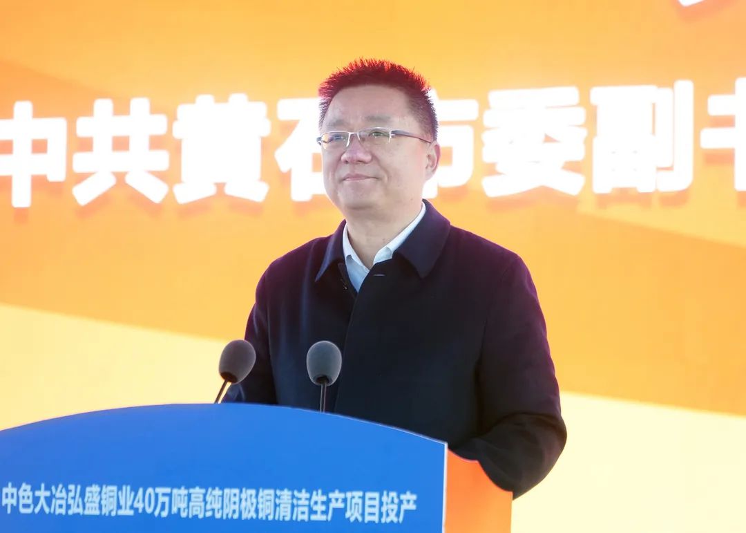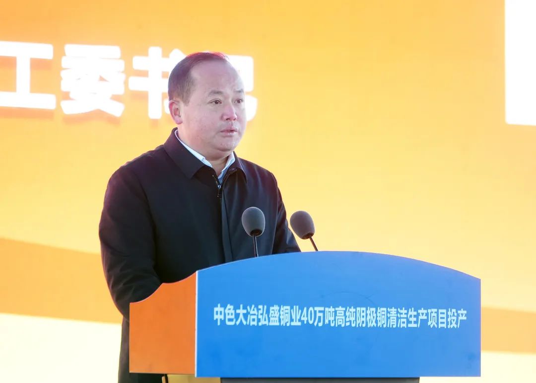 ????吳之凌表示,黃石與中國有色集團(tuán)有著良好的合作基礎(chǔ),弘盛銅業(yè)40萬噸高純陰極銅清潔生產(chǎn)項目正式投產(chǎn),既標(biāo)志著雙方全面合作邁上了新臺階,也標(biāo)志著黃石新材料產(chǎn)業(yè)和新港園區(qū)建設(shè)取得了里程碑式的成果。黃石真誠希望與中國有色集團(tuán)持續(xù)深化交流合作,導(dǎo)入更多產(chǎn)業(yè)鏈項目,共同打造中部地區(qū)最大的銅基新材料生產(chǎn)基地和研發(fā)中心。黃石將以最大力度、最快速度、最實舉措、最優(yōu)服務(wù),共同推動項目早日實現(xiàn)達(dá)產(chǎn)達(dá)標(biāo),與中國有色集團(tuán)攜手并進(jìn)、勇攀高峰。