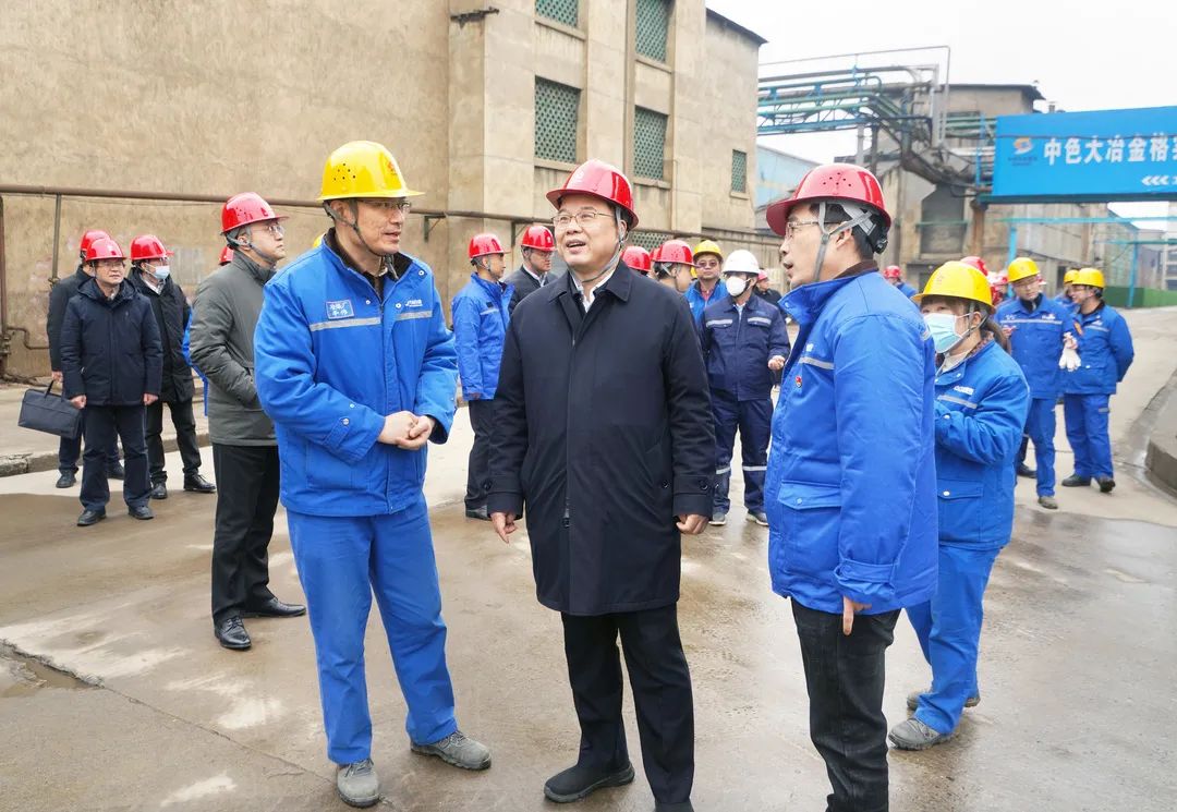 ????2月14日,中國(guó)有色集團(tuán)黨委書記、董事長(zhǎng)奚正平到中色大冶冶煉廠檢查指導(dǎo)環(huán)保升級(jí)改造及生產(chǎn)系統(tǒng)完善工作,勉勵(lì)該廠堅(jiān)定信心、樹立雄心,以科技進(jìn)步推動(dòng)環(huán)保升級(jí)改造,實(shí)現(xiàn)綠色高質(zhì)量發(fā)展。集團(tuán)黨委副書記、總經(jīng)理張晉軍,集團(tuán)紀(jì)委書記范圣權(quán),副總經(jīng)理范巍、劉宇、王焱,中色大冶黨委書記、總經(jīng)理胡國(guó)斌參加檢查。