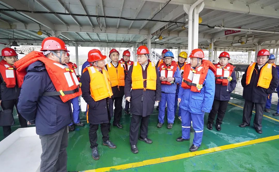 ????2月14日,中國(guó)有色集團(tuán)黨委書(shū)記、董事長(zhǎng)奚正平一行到中色大冶物流公司化工碼頭調(diào)研。