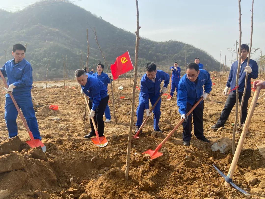 ????陽春三月,風(fēng)和日暖,草長(zhǎng)鶯飛,正是植樹造林的好時(shí)節(jié)。3月12日一大早,公司組織黨員職工在總部大院、冶煉廠、銅山口礦等開展義務(wù)植樹活動(dòng),公司黨委副書記、工會(huì)主席王勃代表公司前往植樹點(diǎn)參加義務(wù)植樹活動(dòng),以實(shí)際行動(dòng)踐行綠色發(fā)展理念和推進(jìn)生態(tài)文明建設(shè)。 ????王勃每到一處,詢問大家植樹的情況,并拿起鐵鍬、水桶等工具和黨員干部職工一道投入到植樹活動(dòng)中。大家揮鍬鏟土、踩實(shí)固定、扶苗澆水……每個(gè)人都一絲不茍,每道工序都不馬虎。 ????植樹間隙,王勃對(duì)在場(chǎng)的干部職工說,每種植一株樹苗,就意味著一個(gè)新生命的萌芽。2023年,公司也要有一個(gè)新的開始,大家要爭(zhēng)當(dāng)良好生態(tài)的維護(hù)者、綠色發(fā)展的踐行者。 ????春日的暖陽下,迎風(fēng)招展的黨旗和“踐行生態(tài)理念 打造綠色礦山”的宣傳條幅,表明了公司走綠色高質(zhì)量發(fā)展道路的信心和決心,寄托了中色大冶人的期冀和希望。看著剛栽下的小樹苗在和煦的春風(fēng)中搖曳,大家格外開心,每個(gè)人的眼神里充滿了期待。 ????公司總經(jīng)理助理張光明、總部部室相關(guān)負(fù)責(zé)人以及公司各單位黨員干部職工,一起為公司十里廠區(qū)、百里礦山增添了一抹新綠。 ????此次義務(wù)植樹活動(dòng)由公司統(tǒng)籌安排、各單位具體實(shí)施、總部黨委組織各部室積極參與,計(jì)劃在植樹節(jié)前后,分別在冶煉廠、銅綠山礦、豐山銅礦、銅山口礦等單位的30余處植樹點(diǎn),根據(jù)不同地貌特點(diǎn)新植紅葉石楠球、紅葉石楠苗、刺槐、金森女貞苗、狗血桃、紅梅、香樟等各種樹苗1830余株,播撒草籽、花籽以及鋪設(shè)草皮97.5畝。 ????近年來,公司以黨史學(xué)習(xí)教育和中央環(huán)保督察整改為契機(jī),堅(jiān)持將生態(tài)文明建設(shè)和環(huán)境保護(hù)擺在突出位置,嚴(yán)守生態(tài)紅線和綠色底線,通過優(yōu)化環(huán)保工藝流程、美化礦山環(huán)境等一系列舉措,著力實(shí)現(xiàn)公司綠色蛻變,讓綠色成為公司高質(zhì)量發(fā)展的最美底色。