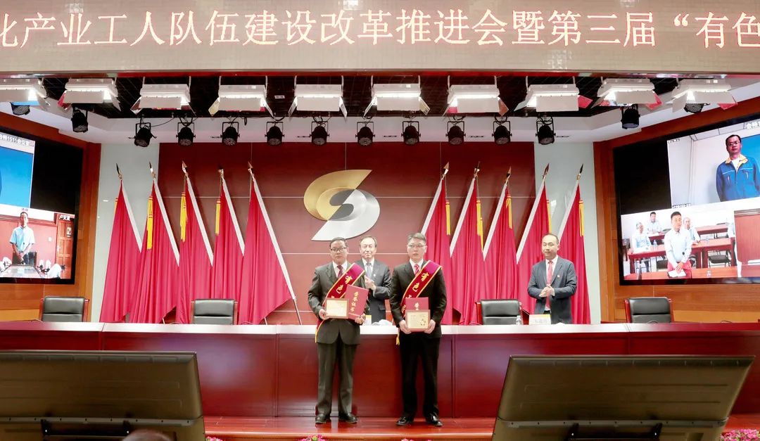 ????會議還對集團(tuán)評定的合理化建議一等獎15項(xiàng)、二等獎25項(xiàng)、三等獎45項(xiàng)均予以表彰獎勵。宣讀了《關(guān)于表彰中國有色集團(tuán)“五比三保”主題勞動競賽先進(jìn)集體和個人》名單,對中色大冶冶煉廠稀貴車間粗煉班等29個集體以及張金鐘等36人進(jìn)行了表彰。宣讀了集團(tuán)第三屆“有色工匠”名單,授予中色大冶職工邵志村等5名同志為中國有色集團(tuán)第三屆“有色工匠”榮譽(yù)稱號,邵志村在現(xiàn)場接受表彰。