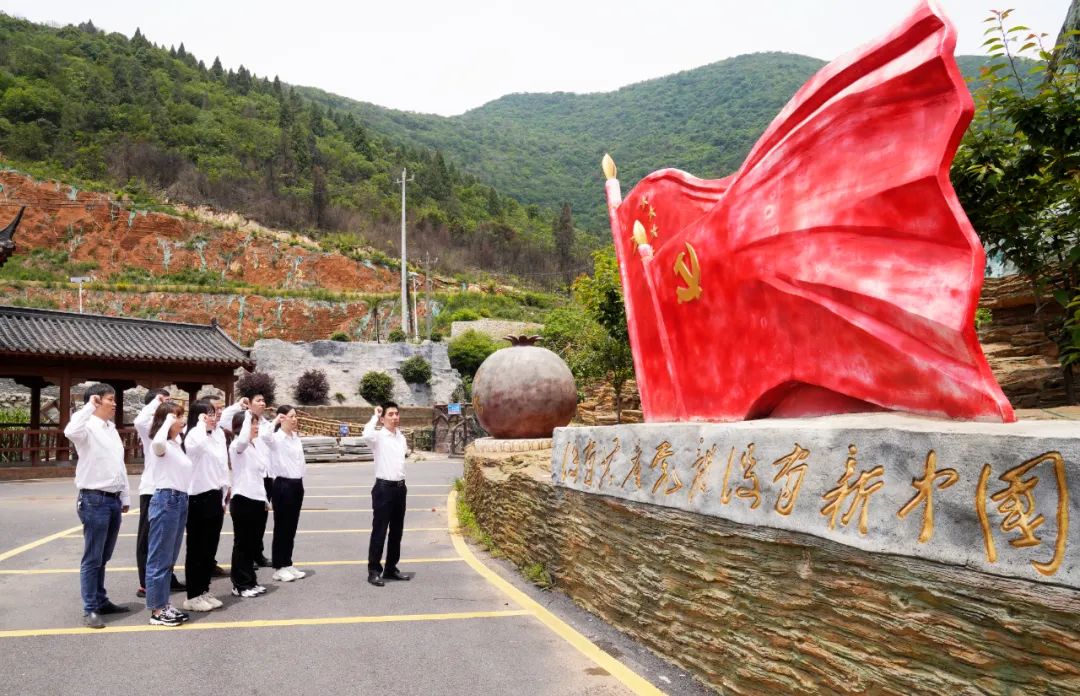 ? ? ? ?在龍角山新冶銅礦舊址,公司黨群工作部黨支部書記帶領全體黨員面向黨旗,舉起右拳,重溫入黨誓詞。
