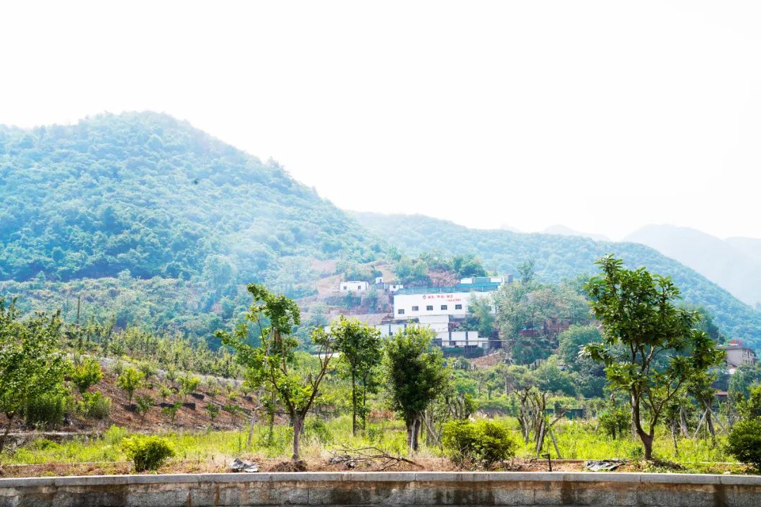 ? ? ? ?拾級而上,穿過1級尾砂壩,集中連片的石榴樹、桃樹、桂花樹長勢喜人,微風吹來,隨風搖曳,山間田野一片翠綠......