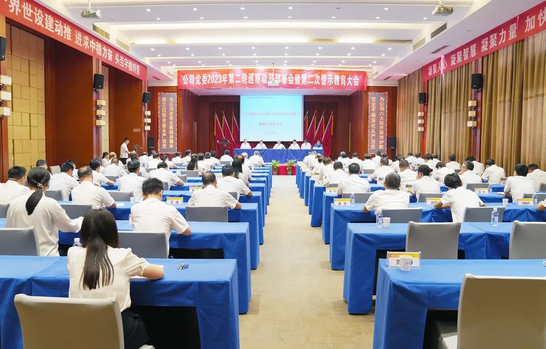 ????會議以“現(xiàn)場+視頻”形式召開。公司黨委領導班子成員、總經(jīng)理助理,公司各單位班子成員、總部各部室負責人,公司科職管理人員以及巡察組、巡察辦全體人員參加會議。