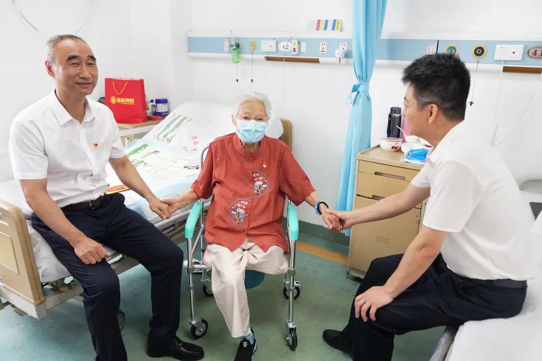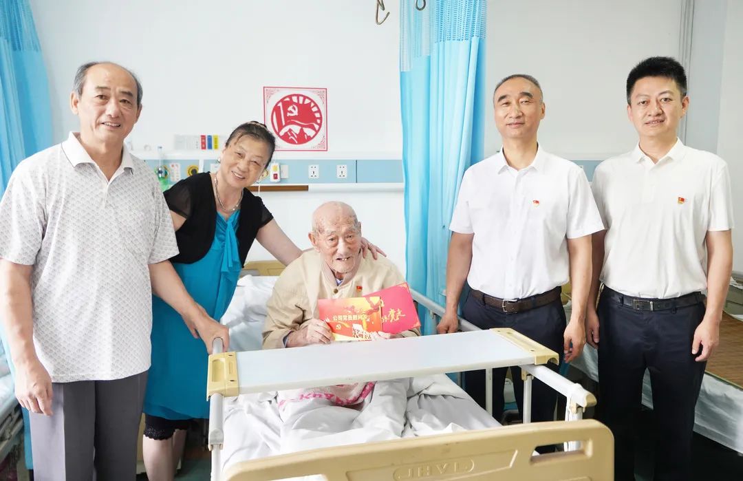 ????公司黨委書記、董事長、總經(jīng)理胡國斌,黨委副書記、工會主席王勃一行首先前往醫(yī)院慰問公司老黨員、離休老干部朱炳臣。今年102歲高壽的朱炳臣與中國共產(chǎn)黨同齡,由于身體狀況在醫(yī)院休養(yǎng),見到胡國斌、王勃一行的到來,他高興地拿起“永遠跟黨走”的卡片表示感謝。胡國斌關切地詢問朱炳臣身體及生活情況,家屬說老人身體恢復得還好,雖然躺在病床上還讓家屬給他讀《習近平新時代中國特色社會主義思想學習綱要》。胡國斌送上慰問金,并表示老人是公司的寶貴財富,囑咐家屬及公司相關部門,照顧好老人身體,讓他們幸福安享晚年。