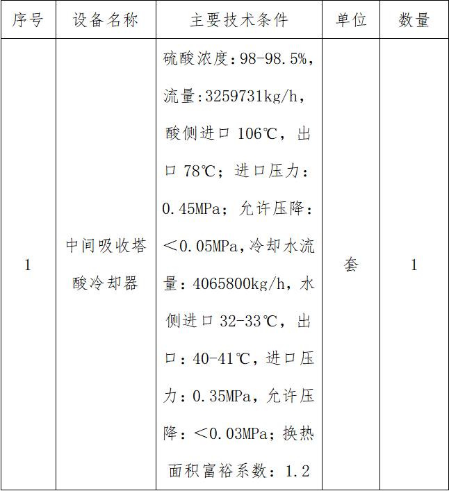 1.項目名稱:中色大冶冶煉廠中間吸收塔酸冷卻器采購項目
